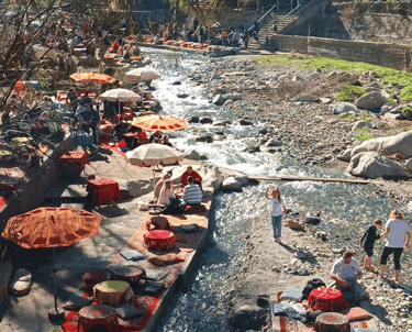 Enjoy a taste of delicious Berber tagine in front of the Ouzoud Waterfalls.